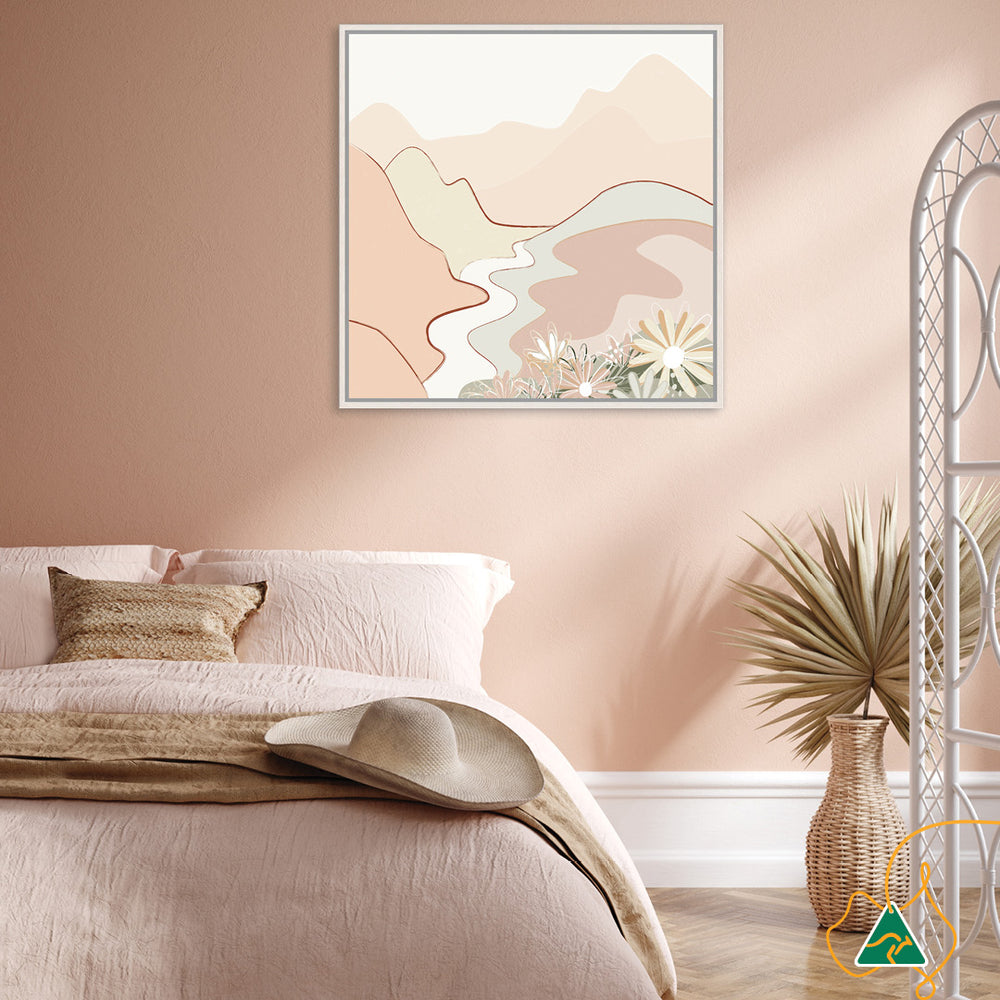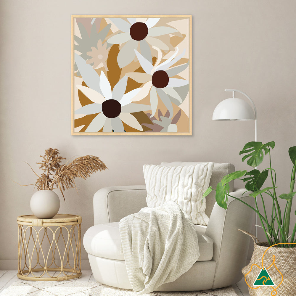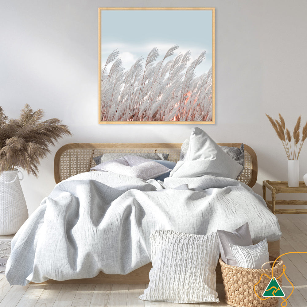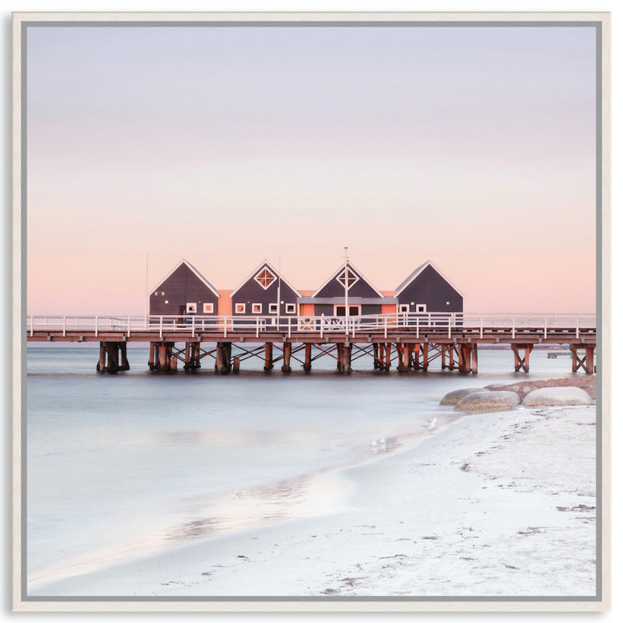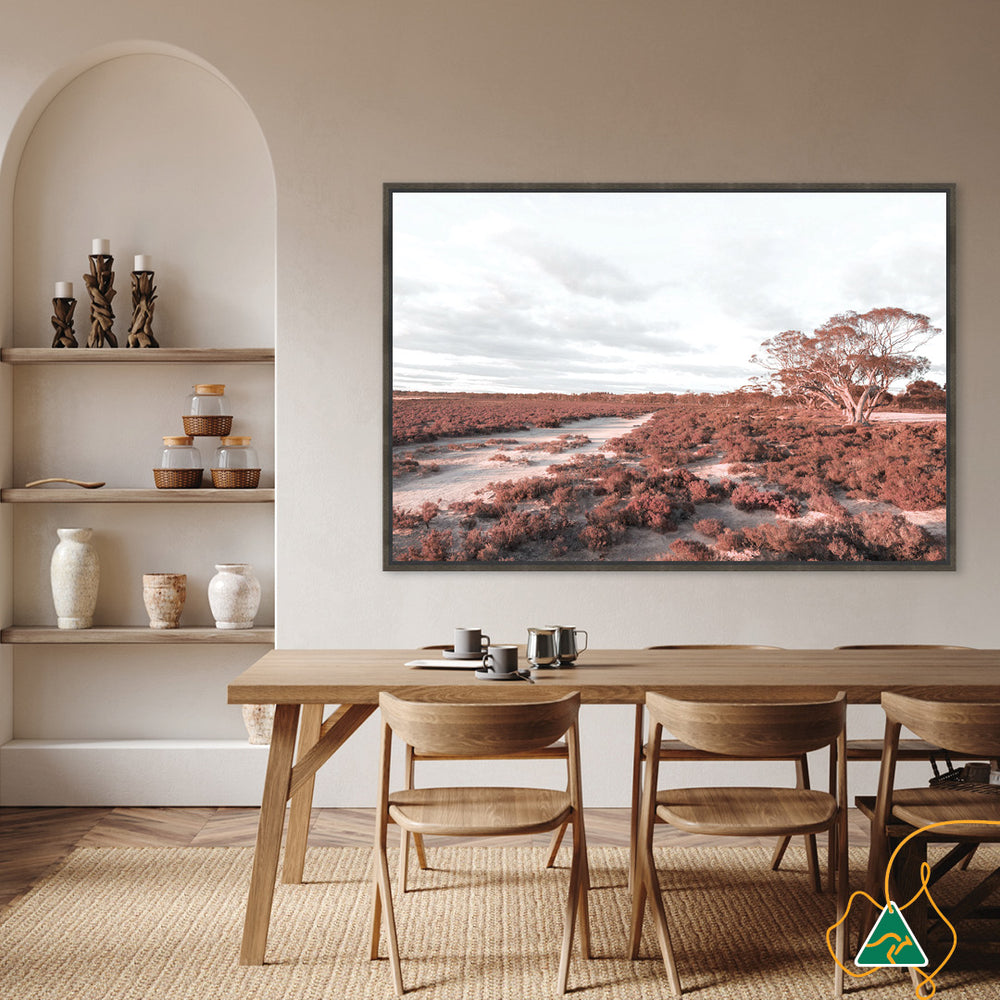 Framed Canvas is stunning photographic, gorgeous graphic and beautiful painted imagery printed on high quality glossy poly-cotton canvas featuring high whiteness and superior colour brilliance and image definition with UV stabilised solvent ink. The canvas is stretched over a sturdy pine support frame and is assembled with a high quality open grain stained timber floating moulding, with a shadow line, D-Rings and strung ready to hang. Australian made under an Australian Made Campaign Ltd licence.