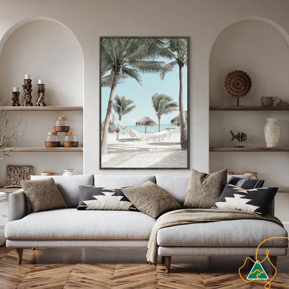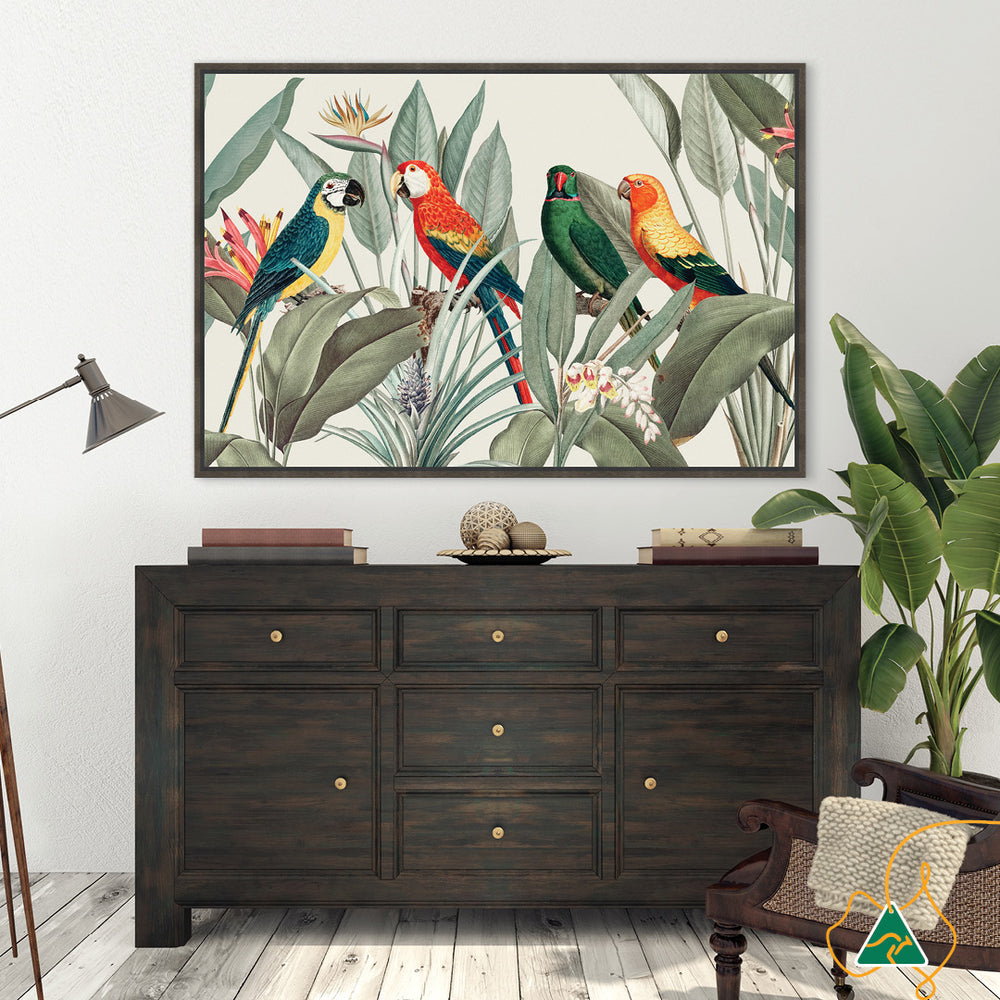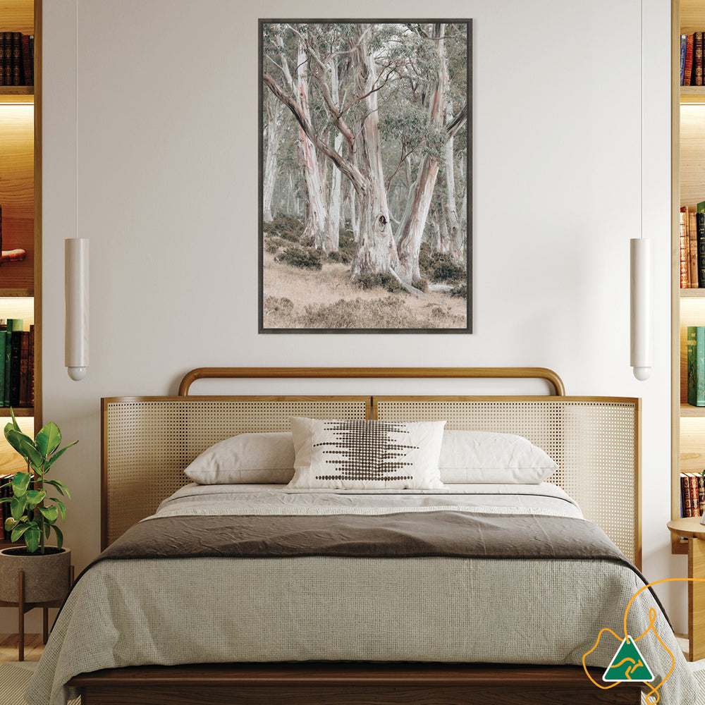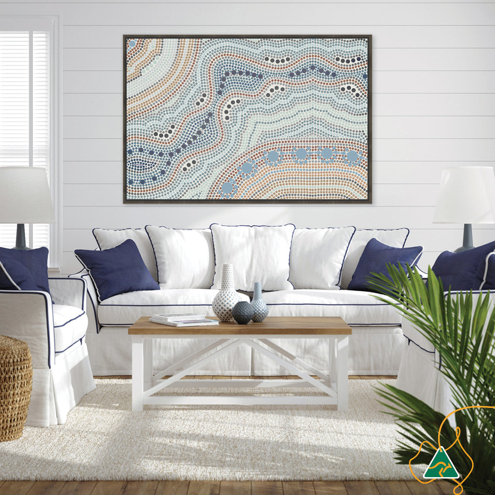 Framed Canvas is stunning photographic, gorgeous graphic and beautiful painted imagery printed on high quality glossy poly-cotton canvas featuring high whiteness and superior colour brilliance and image definition with UV stabilised solvent ink. The canvas is stretched over a sturdy pine support frame and is assembled with a high quality open grain stained timber floating moulding, with a shadow line, D-Rings and strung ready to hang. Australian made under an Australian Made Campaign Ltd licence.