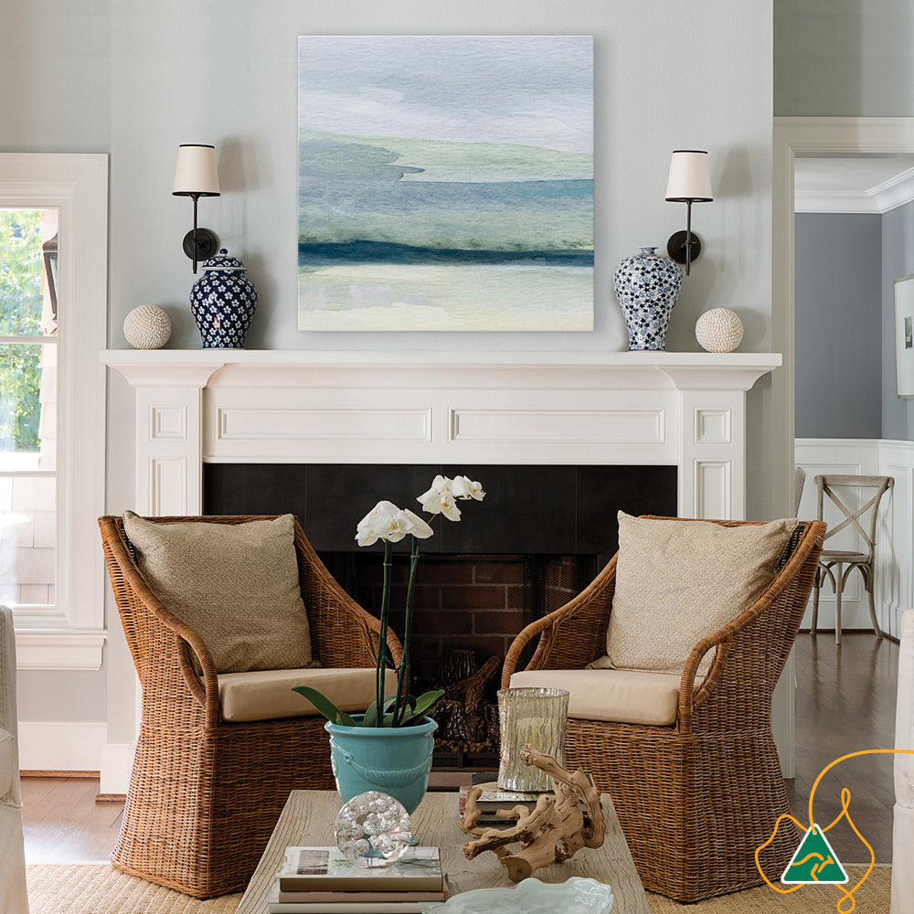Canvas Print: Abstract Sea XI is a modern abstract seascape and the second in a series. The soft green and blue hues of this contemporary coastal watercolour, evokes a feeling of harmony and tranquility. Abstract Sea will add a touch of luxury to interior spaces and is printed on high quality glossy poly-cotton canvas featuring high whiteness and superior colour brilliance and image definition with UV stabilised solvent ink. The canvas is stretched over a sturdy support frame with D-Rings and strung with cord ready to hang. Australian made under an Australian Made Campaign Ltd licence.
