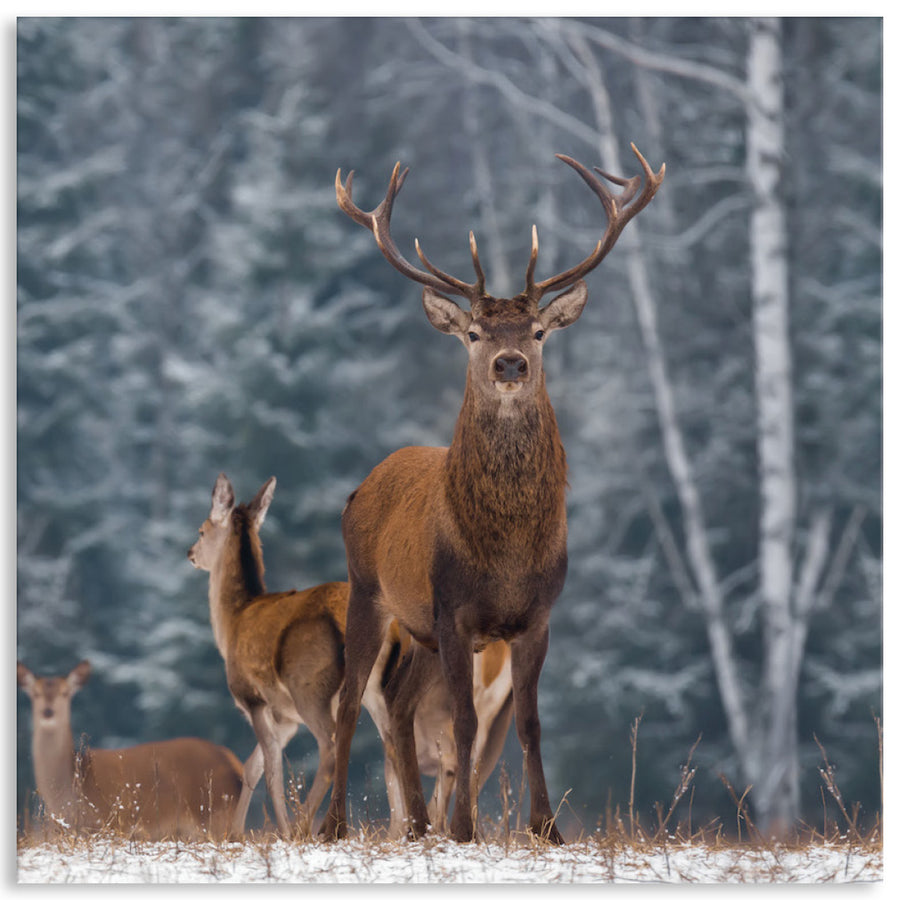 Canvas Print: Sentinel III is a stunning portrait of a Stag and deer herd with a birch forest backdrop. The versatile neutral grey and brown tones of Sentinel will add a rustic charm to your interior decor. Sentinel has a peaceful quality and is printed on high quality glossy poly-cotton canvas featuring high whiteness and superior colour brilliance and image definition with UV stabilised solvent ink. The canvas is stretched over a sturdy support frame with D-Rings and strung with cord ready to hang. Australian made under an Australian Made Campaign Ltd licence.