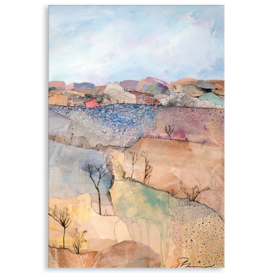 Canvas Print: Luminescent I is a modern abstract painted landscape by a NSW south coast artist and is the second in a series of four eye-catching pastoral designs. Luminescent I is an organic, contemporary rural vista, evoking feelings of harmony and tranquility. Bring the magic of rolling hills and gently sloping pastures inside with this unique design. Luminescent will bring colour and playfulness to interior spaces and is printed on high quality glossy poly-cotton canvas featuring high whiteness and superior colour brilliance and image definition with UV stabilised solvent ink. The canvas is stretched over a sturdy support frame with D-Rings and strung with cord ready to hang. Australian made under an Australian Made Campaign Ltd licence.