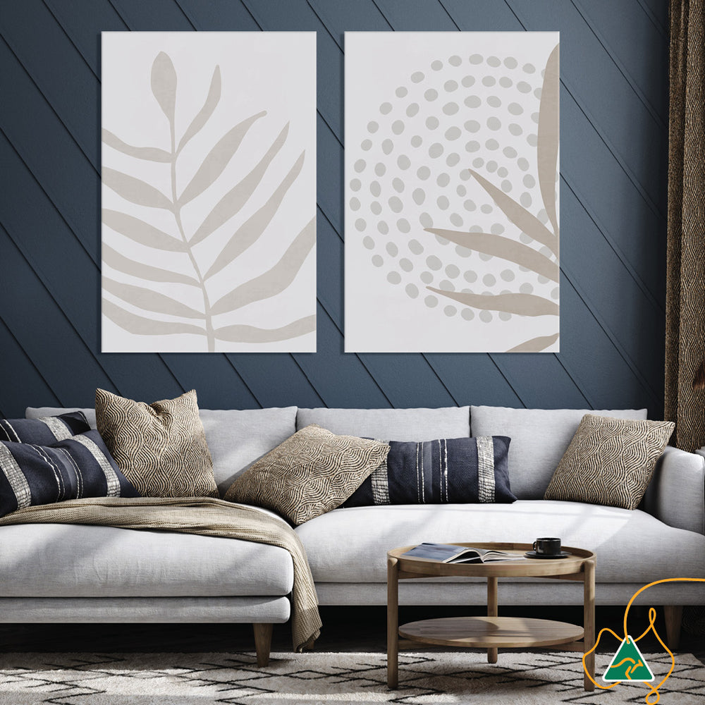 Canvas Print: Mod Foliage I is a modern botanical in neutral, natural and grey tones. Mod Foliage I is fresh and minimal creating a relaxed feel to your interior spaces. Mod Foliage I is a contemporary graphic and has a simplicity suited for a Scandinavian decor. Mod Foliage I is the first in a series of four and is printed on high quality glossy poly-cotton canvas featuring high whiteness and superior colour brilliance and image definition with UV stabilised solvent ink. The canvas is stretched over a sturdy support frame with D-Rings and strung with cord ready to hang. Australian made under an Australian Made Campaign Ltd licence.