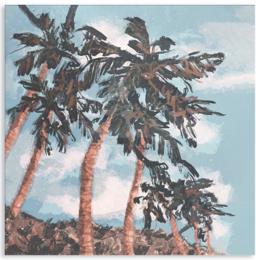 Canvas Print: Palm Beach II is a modern tropical landscape of palm trees with an aqua sky. Be transported to the relaxed atmosphere of a tropical island. Palm Beach II is a contemporary graphic and is printed on high quality glossy poly-cotton canvas featuring high whiteness and superior colour brilliance and image definition with UV stabilised solvent ink. The canvas is stretched over a sturdy support frame with D-Rings and strung with cord ready to hang. Australian made under an Australian Made Campaign Ltd licence.