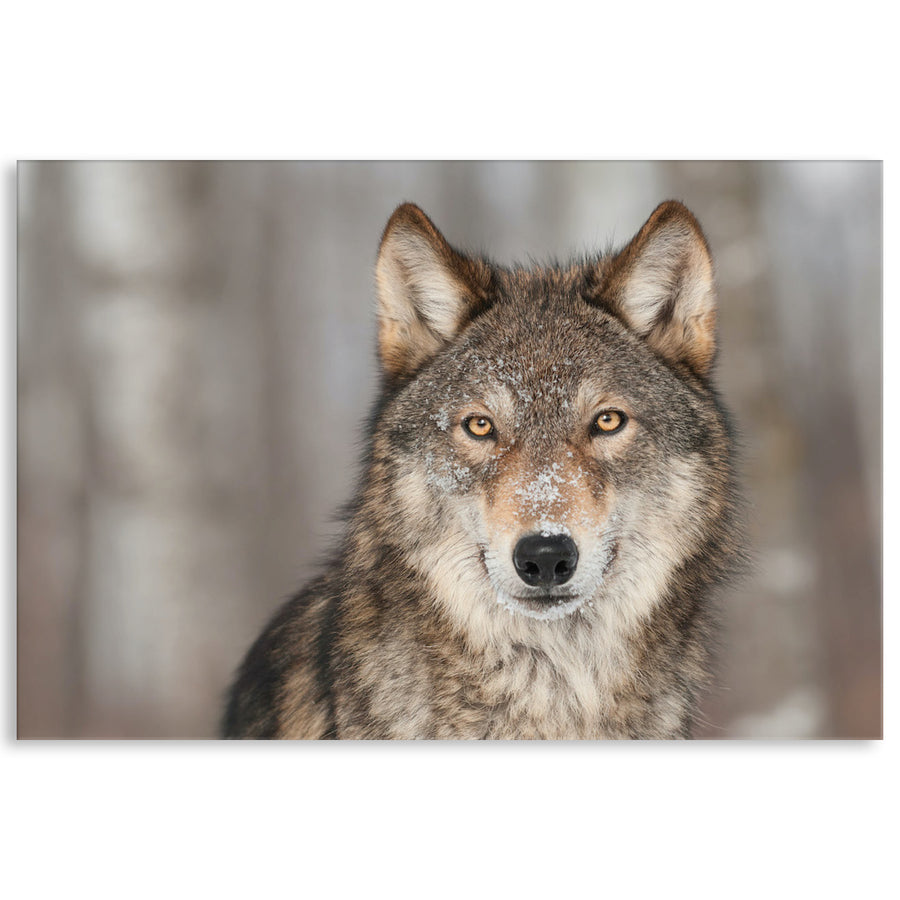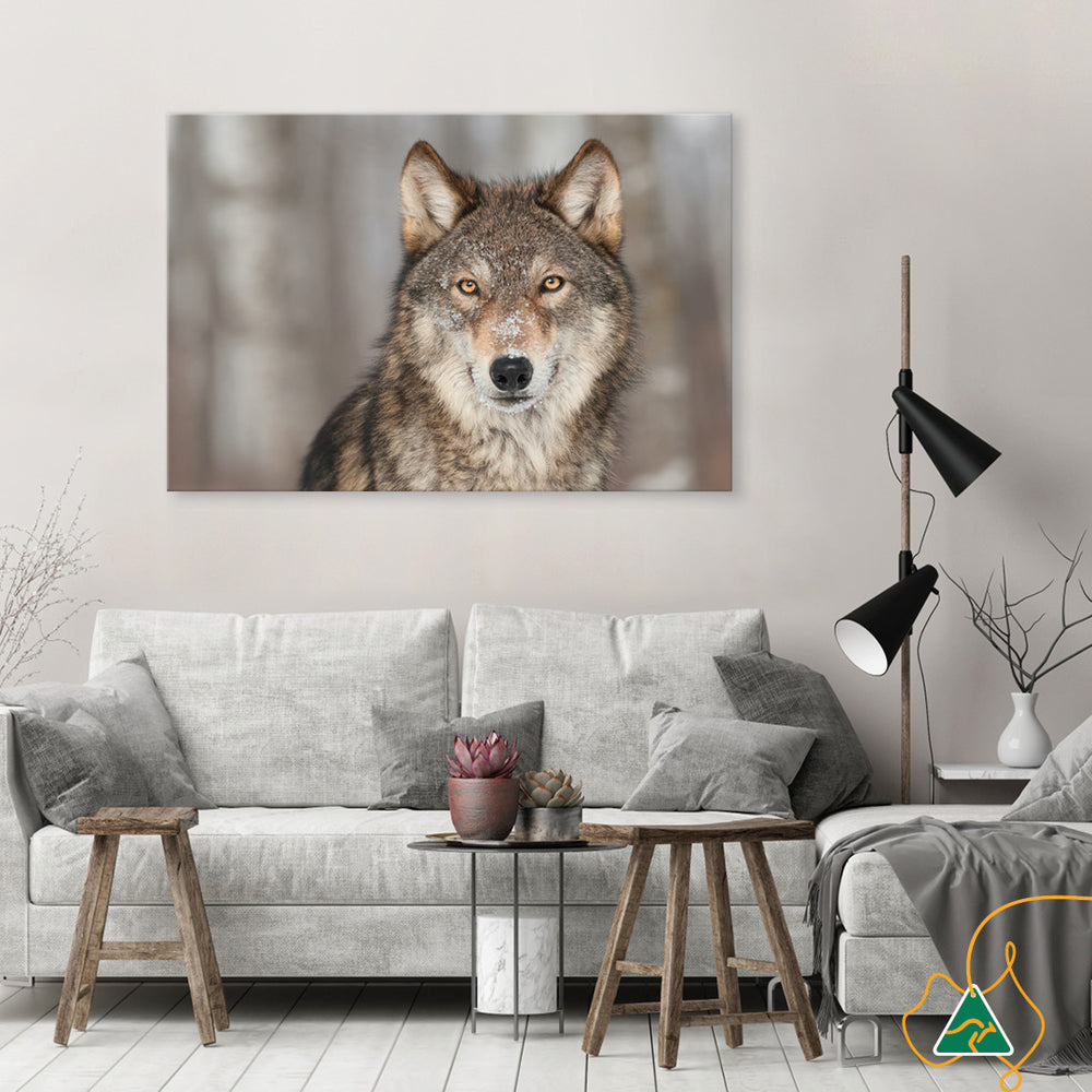 Canvas Print: Whisper I is a contemporary portrait of a grey wolf. Adding wildlife, in versatile neutral grey and brown tones, will add charm to your interior decor. Whisper is printed on high quality glossy poly-cotton canvas featuring high whiteness and superior colour brilliance and image definition with UV stabilised solvent ink. The canvas is stretched over a sturdy support frame with D-Rings and strung with cord ready to hang. Australian made under an Australian Made Campaign Ltd licence.