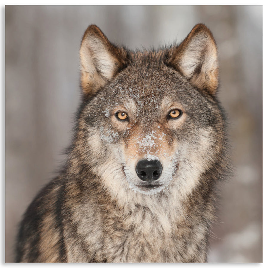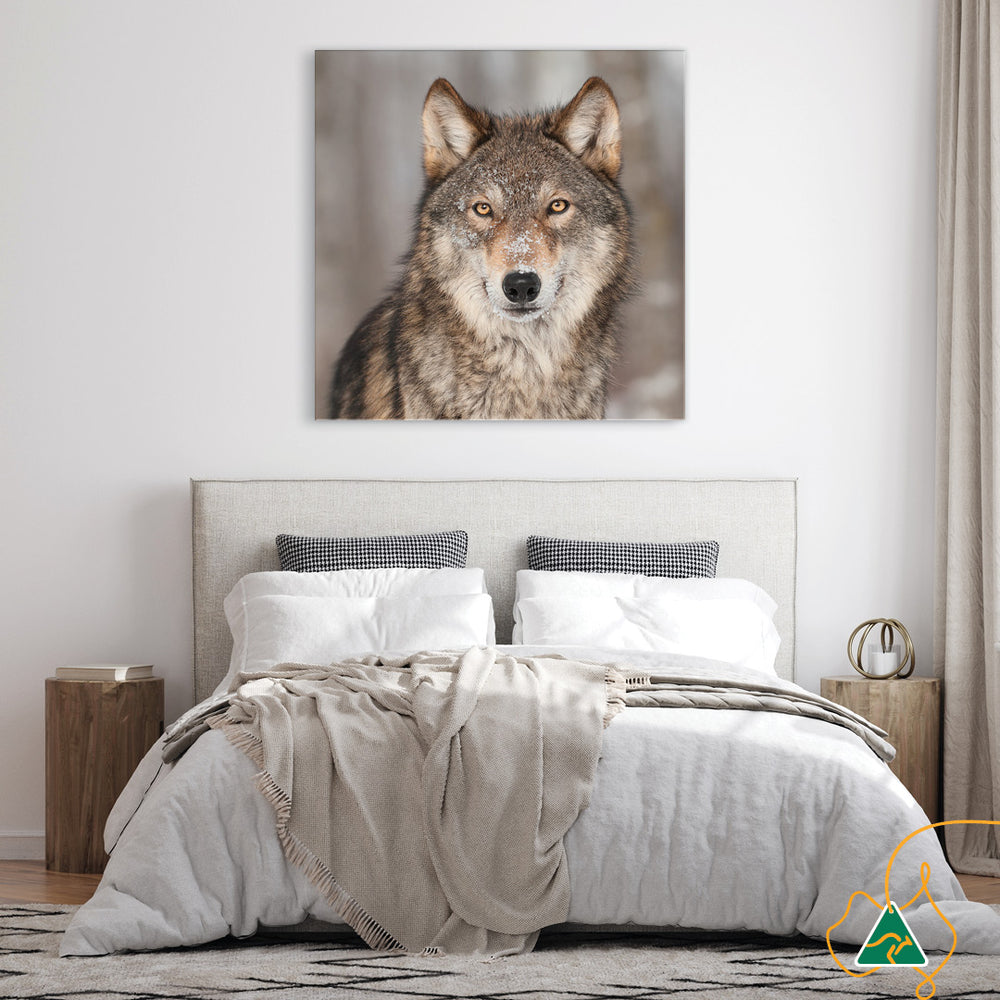 Canvas Print: Whisper I is a contemporary portrait of a grey wolf. Adding wildlife, in versatile neutral grey and brown tones, will add charm to your interior decor. Whisper is printed on high quality glossy poly-cotton canvas featuring high whiteness and superior colour brilliance and image definition with UV stabilised solvent ink. The canvas is stretched over a sturdy support frame with D-Rings and strung with cord ready to hang. Australian made under an Australian Made Campaign Ltd licence.