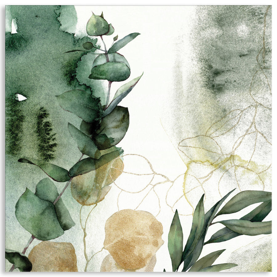 Canvas Print: Woodland Stroll IV is an abstract botanical with a watercolour effect. Add colour and interest to your decor with the green and gold tones of eucalypt leaves. Woodland Stroll IV will elevate your interior space making it feel fresh, warm and inviting. Woodland Stroll IV is the second in a series of two and is printed on high quality glossy poly-cotton canvas featuring high whiteness and superior colour brilliance and image definition with UV stabilised solvent ink. The canvas is stretched over a sturdy support frame with D-Rings and strung with cord ready to hang. Australian made under an Australian Made Campaign Ltd licence.